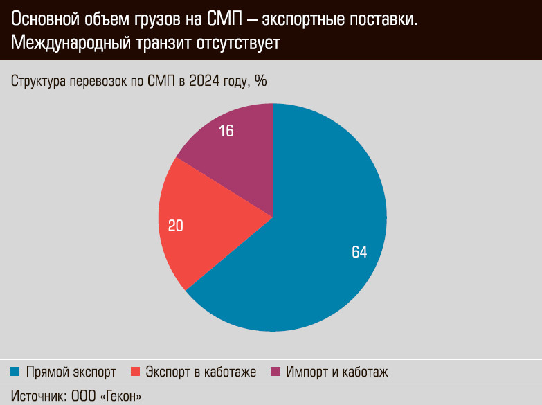 Таким образом, надо четко понимать, что главный функционал СМП — это обеспечение выхода продукции горнодобывающего и нефтегазового комплексов российской экономики на мировой рынок. Причем, и это принципиально важно, выхода прямого, не связанного ни с какими реальными или потенциальными ограничениями, которые могут возникнуть в Датских или Черноморских проливах.