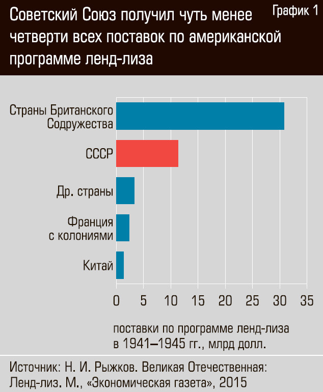Союзнические поставки в СССР вооружения, техники, материалов и продовольствия приблизили Победу, но достигнута она была благодаря подвигу наших соотечественников на поле боя и в тылу. Для США же Вторая мировая война стала мощным экономическим стимулом и источником прибыли корпораций
