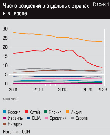 Возможно, единственное, что сегодня объединяет мир, — неумолимый демографический спад. Средний коэффициент рождаемости населения (СКР) снижается во всех без исключения странах. По итогам 2024 года в зоне «ниже воспроизводства населения» оказалось 110 стран из 195, в том числе Россия, а также большая часть пока еще густонаселенных, но стремительно стареющих государств Азии, Америки и Европы. В плюсе в основном страны Африки и бывшие советские азиатские республики. Но даже на Черном континенте, где до сих пор сохраняются высокие темпы прироста населения, суммарный коэффициент рождаемости падает со скоростью 1,3–1,6% в год, и при сохранении такой тенденции к середине столетия докатится до уровня простого замещения — 2,17. А ведь буквально пару лет назад считалось, что это произойдет только к 2100 году.