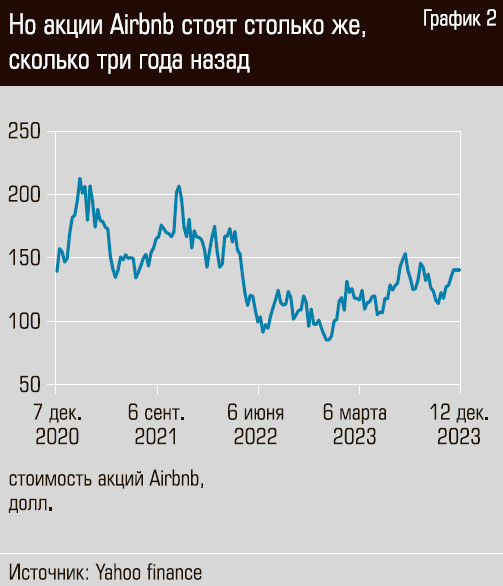 Стоимость акций Airbnb не растет. Сегодня они на 35% дешевле, чем на пике в начале 2021 года. А значит, у инвесторов есть сомнения относительно перспектив этого бизнеса.