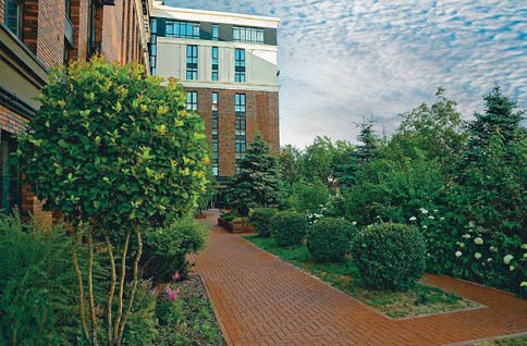 Чуть позже «Мармакс» возвел неподалеку от «Достояния» еще один комплекс — «Наследие-2», с огромной панорамной террасой, мебелью и зеленью на крыше. Но в чем же инновационность этих проектов? Во-первых, дома здесь не плоские, они имеют фактуру, сложные кирпичные фасады с мозаикой из керамогранита и архитектурной подсветкой. Во-вторых, нижние этажи были изначально спроектированы как коммерческие площади. Причем арендовать их могли только компании, обеспечивающие комфорт жителей: кафе, большой продуктовый магазин, сервисы. В-третьих, ландшафтный дизайн. Двор комплекса озеленяли в соответствии с концепцией «Четыре сезона», чтобы в любое время года здесь была зелень; высадили крупномеры. Кроме того, двор зонировали для жителей разных возрастов и продумали несколько сценариев: например, вокруг большой ели оставили пространство для новогоднего праздника. В-четвертых, все подъезды оформлены по авторским дизайн-проектам. Для сравнения: в то время даже в неплохих рязанских новостройках отделка была очень скромной — потолок «Армстронг» и крашеные стены. И наконец, в-пятых, сквозные подъезды с двумя выходами — на улицу и во двор. В подъездах есть места для хранения колясок и велосипедов, комнаты-лапомойки для собак. Все эти элементы кажутся более или менее привычными для современного качественного жилья Москвы или Екатеринбурга, но не будем забывать, что речь идет о рязанском проекте десятилетней давности.