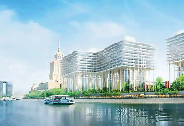 Другое здание, строящееся на трубобетонных колоннах, еще более необычно. Это жилой комплекс «Бадаевский», расположенный напротив столичного Сити. По замыслу архитекторов из швейцарского бюро Herzog & de Meuron, дома должны «парить в воздухе» — восьмиэтажное здание будет опираться на 35-метровые колонны. Такая схема позволит создать под новым жилым комплексом городское общественное пространство с парком и сохранить вид на историческое здание Бадаевского завода.