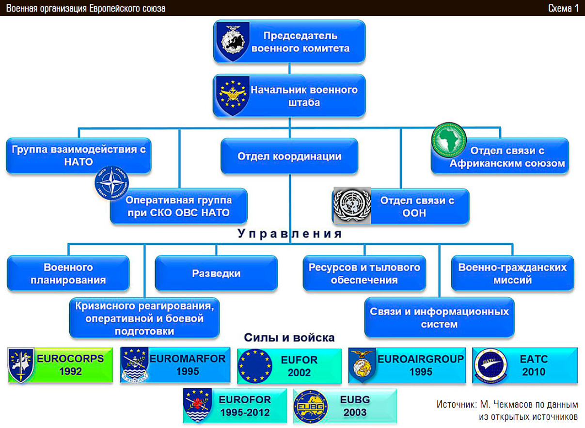 Идея создания объединенных вооруженных сил Европы вместе с формированием общей оборонной политики возродилась в 1992 году после подписания Маастрихтского договора, учредившего Европейский союз. С этой целью в 2001 году были сформированы высшие органы военного управления ЕС: военный комитет и штаб с необходимыми отделами и управлениями. Все как по нотам, свято место пусто не бывает. Уходят из Европы американцы, и европейцы пытаются выживать самостоятельно.
