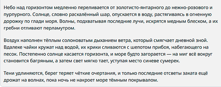 Еще один параметр — повторяемость. Модели склонны повторять стилистические шаблоны: для имитации стиля определенного писателя применяются инструкции в промпте.