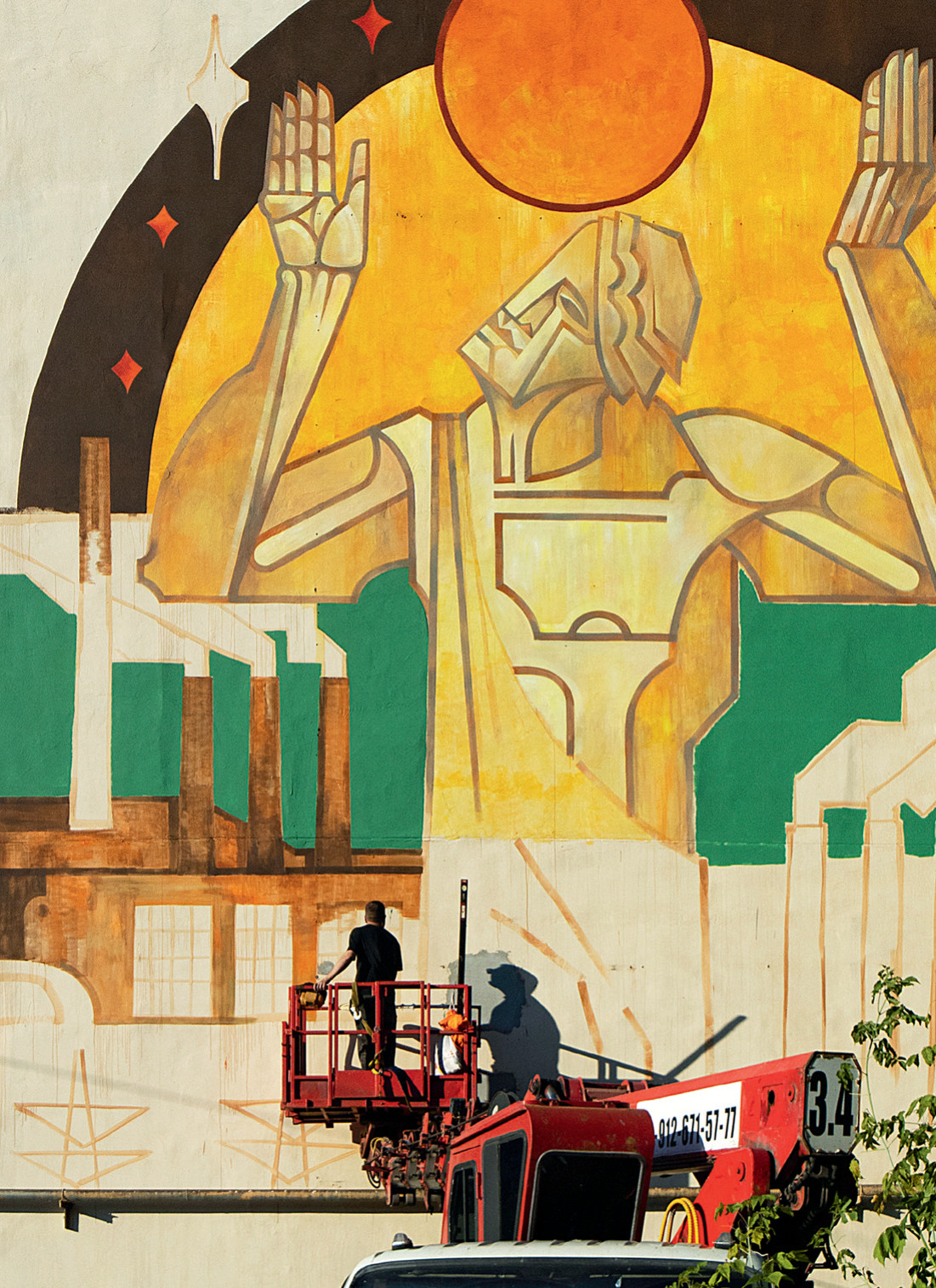 — Это во многом вопрос технический. С появлением акриловых красок и новых материалов все стало доступнее и быстрее. В советское время акрила не было — поэтому выкладывали из мозаики, кроили витражи. А мы живем в технологический век, когда можно купить баллончик с краской и встать к стене. Муралы обязаны своим широким распространением — не смейтесь — появлением доступной возможности работать с автогидроподъемниками, машинами со стрелой и люлькой. Искусство постоянно трансформируется. Мы привыкли к салонному искусству, элитарности в галереях. Пришло время — и искусство вышло на улицы, начинает взаимодействовать со зрителем, вести прямой диалог.