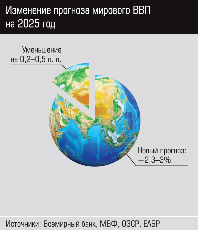 Прогноз роста мирового ВВП на 2025 год экономисты Всемирного банка снизили на 0,4 п. п., до 2,3%.