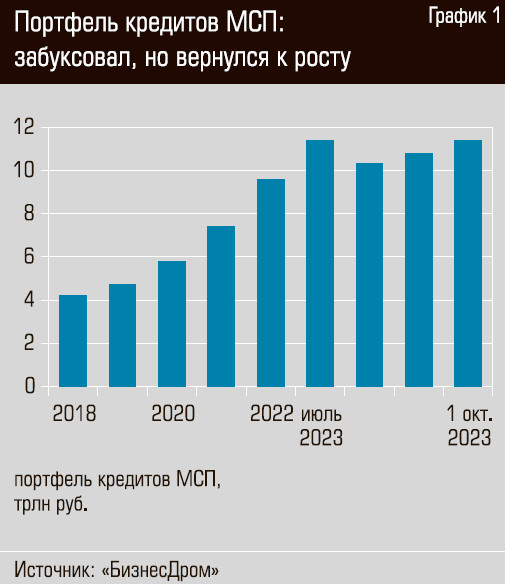 В данных ЦБ, выходящих с определенным, примерно двухмесячным лагом, никакого замедления на конец сентября не фиксируется — напротив, портфель кредитов МСП вырос на 6,3% к предыдущему месяцу и на 32% к сентябрю 2022 года. В ЦБ предполагают, что компании спешили взять кредиты, пока ставки еще не выросли.
