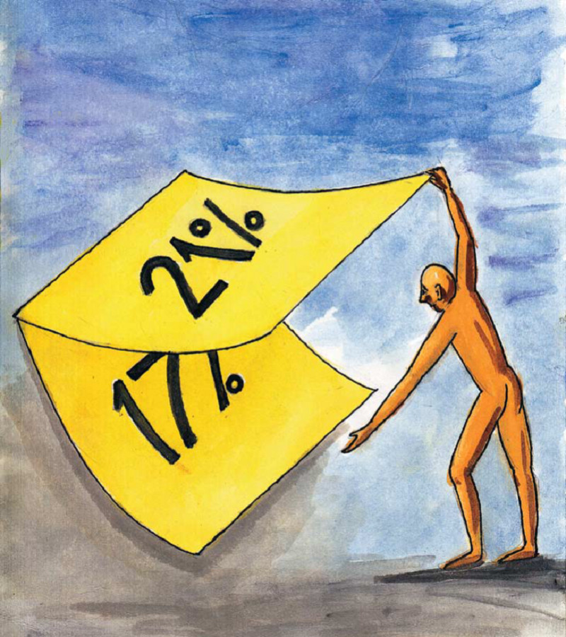 Поясним на примере. Один из крупнейших банков предлагает депозит с максимальной доходностью в 21%, которую можно получить, положив 50 тыс. рублей и больше на три года. Однако заявленную доходность клиент увидит только при капитализации процентов; без нее цифры будут куда ниже: 16,4%. Более того, с капитализацией (то есть с ежемесячным зачислением процентов обратно на вклад) получаются все те же 16,4%! Сумма, причитающаяся клиенту по итогам первого года, вырастет на 17,69%, по итогам второго — на 17,69%, то же произойдет и на третий год. Хочется спросить: откуда же тогда берется 21%? Так вот, если сравнить изначальные 50 тыс. рублей с 81,5 тыс. по итогам трех лет, то прирост в 63%, разделенный на три, и даст заветные 21%. Иными словами, в честной рекламе было бы написано, что предлагается сделать вклад под 16,4% годовых с ежемесячной капитализацией процентов, а никак не под 21%.
