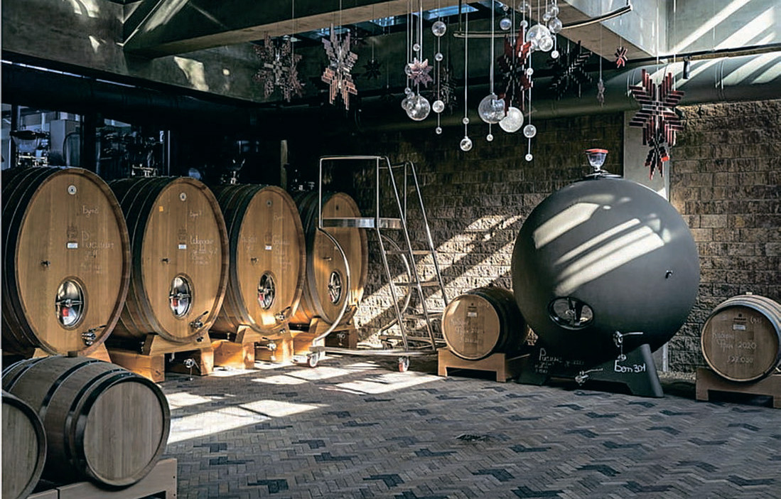 С особым трепетом Александр Павлович подошел к возведению винодельни, хотя собственный дом так и не построил. Винодельня в имении — настоящий памятник архитектуры, она выполнена из натуральных материалов и вписана в ландшафт. Даже технический пожарный пруд выглядит как небольшое овальное озерцо, в котором плавают карпы. При возведении здания использовался проект французских архитекторов; кстати, дочь Александра Сикорского участвовала в проектировании и отвечала за интерьер внутренних помещений.