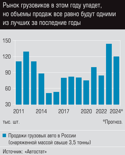 Традиционно приобретение грузовых машин и обновление автопарка рассматривается компаниями-перевозчиками как серьезный инвестиционный проект. И поэтому не случайно участники рынка жалуются на удорожание кредитов. «Основным фактором, повлиявшим на продажи грузовиков в 2024 году, стало повышение ключевой ставки ЦБ до 19 процентов, что ограничило доступность кредитов и лизинговых программ на покупку техники», — рассказывает Санджар Ашуралиев, генеральный директор транспортной компании Delko.