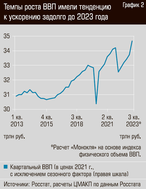 «Монокль» в лице журнала «Эксперт» (который мы тогда выпускали и который менеджеры ВЭБа теперь меняют к лучшему) свои прогнозы менять не собирается. В феврале мы одновременно с экономистом Маратом Узяковым выдали шокирующий своим оптимизмом вариант (см. «А дальше — борьба и экономический рост», «Эксперт» № 9 за 2023 год) и написали, что экономика уже в 2023–2024 годах выйдет на ежегодные темпы роста в 4–6%. Это она и сделала в течение второго и третьего кварталов уходящего года. Теперь же мы поговорили с десятками российских предпринимателей и можем позволить себе сделать вывод: микроэкономика прекрасно объясняет высокие результаты макроэкономики 2023 года. И они не случайны.