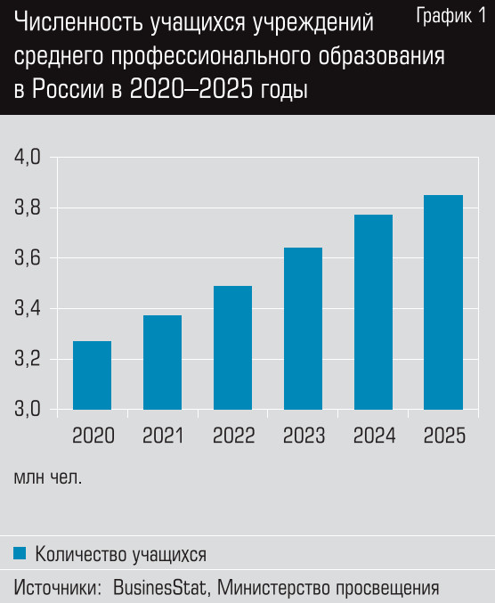 Из тени высшего образования среднее начало выходить около десяти лет назад. Но если раньше эксперты связывали рост его популярности со схемами обхода ЕГЭ — после колледжа можно поступить на сокращенную программу в вуз, сдав его внутренние экзамены, — то теперь очевидно, что драйверами СПО стали другие факторы. Главный из них — рост численности молодежи в возрасте 15–19 лет, который, по данным демографического прогноза Росстата, продлится до 2032 года. А значит, растет конкуренция за места в учебных заведениях и за успешное трудоустройство. На этом фоне в мае этого года были приняты поправки к Закону об образовании, согласно которым вузы должны заранее определять количество платных мест и не увеличивать его в ходе кампании (раньше на внебюджет они могли зачислить всех желающих, просто увеличив квоту по ходу набора). Не секрет, что платное высшее абитуриенты часто рассматривали как запасной аэродром на случай, если они не прошли на бюджет, так что резкое сокращение возможностей и увеличение конкуренции в этом сегменте вынудило многих пойти в СПО.