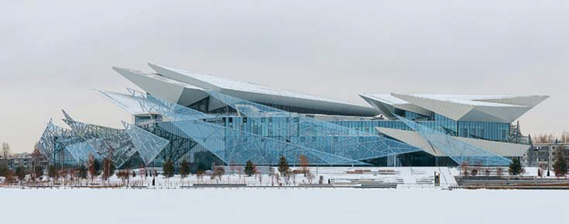 В проекте-победителе членов жюри подкупили два момента. Первый — чрезвычайно яркий, даже агрессивный образ дома: ледяной цветок. «В Казани настоящая зима, и на озере Кабан иногда образуются ледяные цветы. Я не знаю ни одного человека, который сам бы их видел, но такой миф есть, и все в это верят, — расшифровывает образ здания Олег Шапиро. — Еще было Казанское ханство, это часть истории большой России. И татары в ней очень целеустремленная нация. Нас много раз упрекали, что фасад слишком агрессивный. Но нам кажется, что в самый раз». Архитектура отсылает и к старому зданию театра — модернистскому сооружению 1980-х годов с мощной треугольной конструкцией наверху.