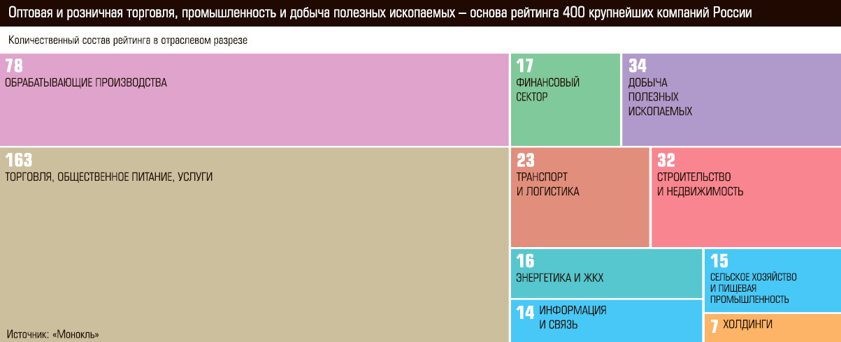 Рейтинг крупнейших компаний России — это отражение множества событий, произошедших в российской экономике. Он демонстрирует состояние костяка экономики, ее крупнейших корпораций, дающих более 7 млн рабочих мест. Этот бизнес формирует федеральные и региональные бюджеты, осваивает регионы. Динамика выручки крупнейших компаний показывает, как пережили год основные отрасли — нефтегазовая промышленность, железные дороги, ретейл, обрабатывающая промышленность. Сравнивая динамику, можно понять, на каких «лошадках» ехала экономика в прошлом году, кто нашел новый Клондайк и рванул вверх, кто замедлился, а кто переживает кризис.