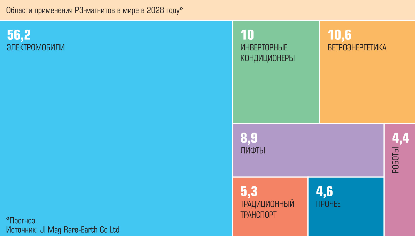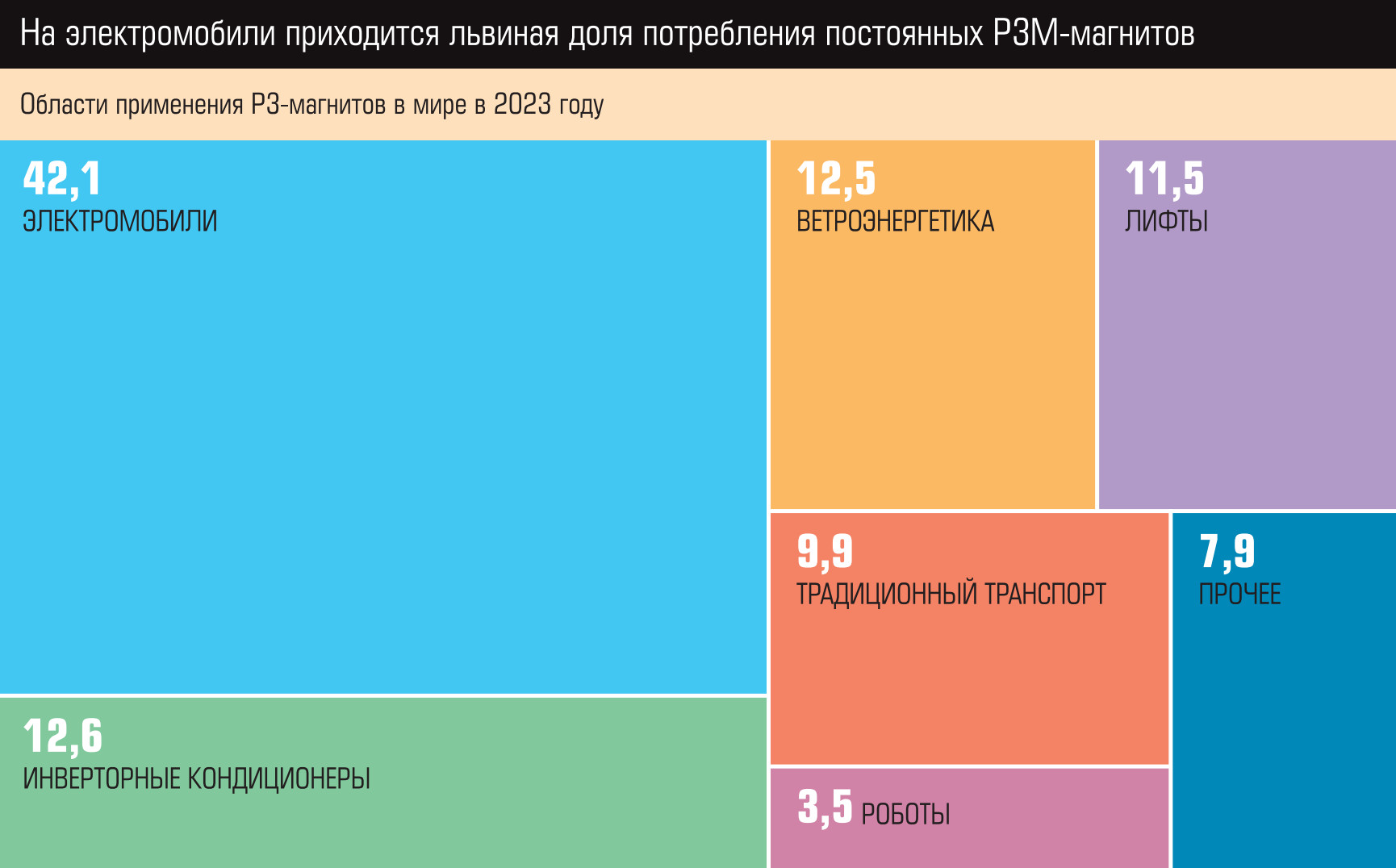 В России отсутствует спрос для обеспечения загрузки крупнотоннажного редкоземельного производства — нет производства электромобилей. А Китай основную прибыль в РЗМ зарабатывает именно на них. Так, в прошлом году в мире было произведено 300 тыс. тонн редкоземельных магнитов (90% в Китае), 42% их применения пришлось на электромобили. В 2024 году КНР также произвела 11,5 млн электромобилей и экспортировала 2,5 млн. «[Исходя из этой модели] в пересчете на численность населения России необходимо производить один миллион электромобилей, чтобы экономика заработала и цепочка потребления была запущена», — полагает Андрей Андрианов, генеральный директор «Росатом МеталлТех», подразделения корпорации, ответственной за завод в Глазове.