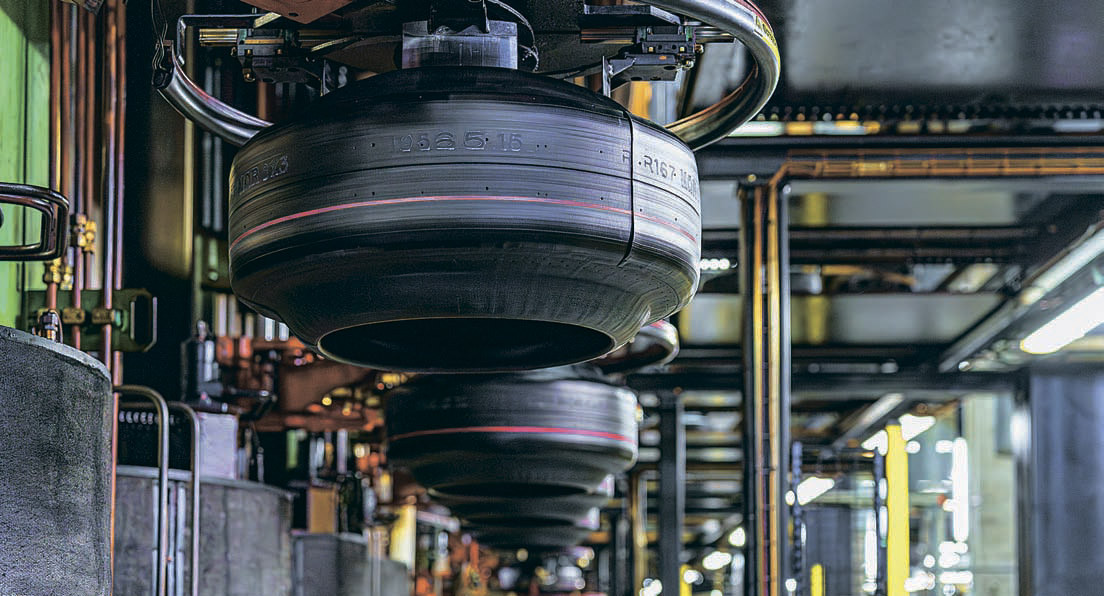 А вот линия для производства каркаса покрышки: их делают из длинных синтетических и стальных нитей, которые изначально намотаны на множество барабанов. Выстроенные в высокий ряд барабаны медленно вращаются, и на ум невольно приходит прядильная фабрика. Сопровождающий между тем сыплет терминами: бортовое крыло, стальной брекер, нейлоновый бандаж, текстильный корд — все это ключевые элементы каркаса, которые затем поступают в цех сборки. Тут, уже на других барабанах, наматывается корд, монтируются основные элементы покрышки — боковина, каркас, протектор и брекер, придающий шине жесткость и защищающий ее от ударов. В результате получается «полуфабрикат», готовый к завершающему этапу — вулканизации.