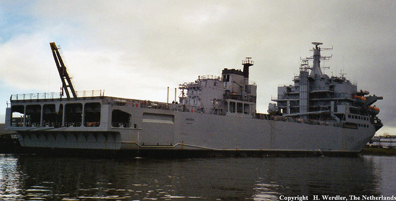 Впрочем, совсем без авианесущих кораблей страна не осталась. Великобритания является единственным в мире государством, в составе флота которого находится специализированный учебный авианосец. В 1987 году английским ВМС был передан учебный авианесущий корабль «Аргус» (HMS «Argus»), переоборудованный из контейнеровоза «Котендер Безант» («Kotender Besant») итальянской постройки 1981 года. С началом Фолклендского конфликта этот контейнеровоз был временно зафрахтован министерством обороны Великобритании, судно совершило два рейса в Южную Атлантику и доставило в район боевых действий девять вертолетов «Чинук» и четыре самолета вертикального взлета и посадки (СВВП) «Харриер». После окончания военных действий контейнеровоз вернули владельцу – компании «Си контейнерз», но в начале 1984 года ВМС приняли решение выкупить судно за 13 млн фунтов стерлингов и переоборудовать его в учебный авианосец.