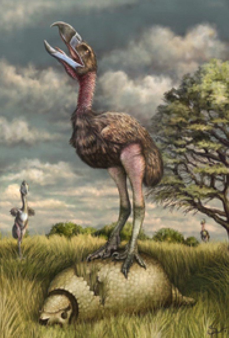 Южноамериканскую фауну раннего кайнозоя невозможно представить без одной из самых известных групп птиц. В то время на континенте господствовали представители отряда кариамообразных (Cariamiformes Furbringer, 1888), нелетающих птиц, что облюбовали просторы пампы. Сейчас эта группа представлена всего двумя родами – хохлатой кариамой, или сериемой (Cariama cristata, Linnaeus, 1766), и черноногой кариамой, или чунгой (Chunga burmeisteri, Hartlaub, 1860)). Последней, к слову, дали латинское имя в память о Карле Бурмейстере. Мы его уже упоминали в предыдущих статьях. Этому великому ученому принадлежит заслуга выделения отряда ракоскорпионов (Eurypterida Burmeister, 1843), рассказ о котором можно найти в № 1 за 2024 год.