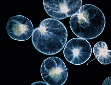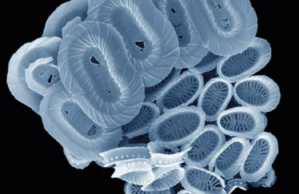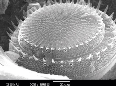 Диатомовые водоросли (Diatomea Dumortier, 1821) – одноклеточные морские и пресноводные организмы, фотосинтетики, отличаются тем, что строят домики из кремнезема; важный компонент экосистем – на диатомей приходится до 50% производимого всеми организмами кислорода, они составляют кормовую базу и участвуют в круговоротах кремния и углерода; для палеонтологов и экологов диатомеи – это невероятный источник знаний об экосистемах, ведь они отражают малейшие изменения в количественном и качественном составе химических элементов в среде; древнейшие диатомеи известны в юрских янтарях Таиланда возрастом 150 млн лет;