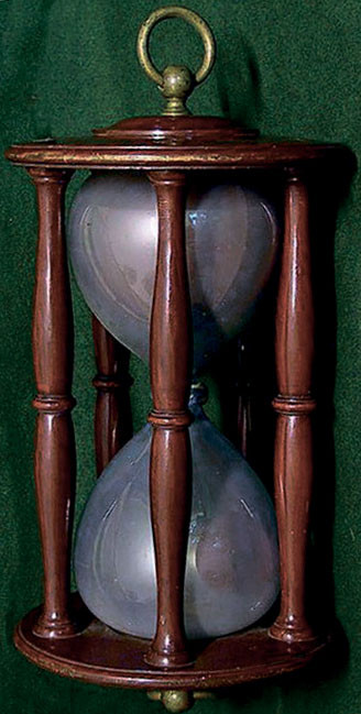 На парусных кораблях у колокола стоял специальный часовой, в обязанности которого входило наблюдать за двумя склянками – получасовой и четырехчасовой. Для точности показания времени песочные часы подвешивали в вертикальном положении. Когда в получасовой склянке песок пересыпался из одной половины в другую, часовой мгновенно переворачивал ее и ударял в колокол. Нужно сказать, что у склянок ставили самых дисциплинированных матросов, и вахтенные несли строгую ответственность за хранение времени, а в случае малейшей оплошности подвергались весьма суровому наказанию. С того времени сохранилось выражение «сдать под склянку», что означает сдать что-либо под охрану часовому. Привычка исчислять время склянками у моряков парусного флота была настолько сильна, что они никогда не спрашивали: «Который час?», а говорили: «Сколько склянок?». Более мелкие склянки – одно- и полуминутные использовались при определении скорости по лагу и при астрономических наблюдениях, а пяти- и трехминутные – при проведении учений, например, для контроля скорости постановки парусов.