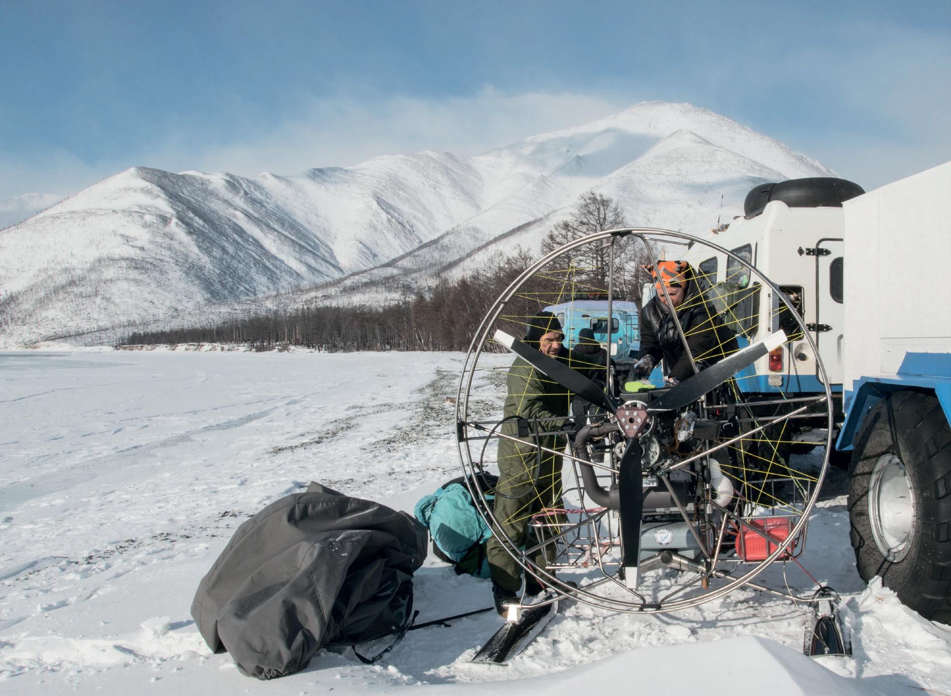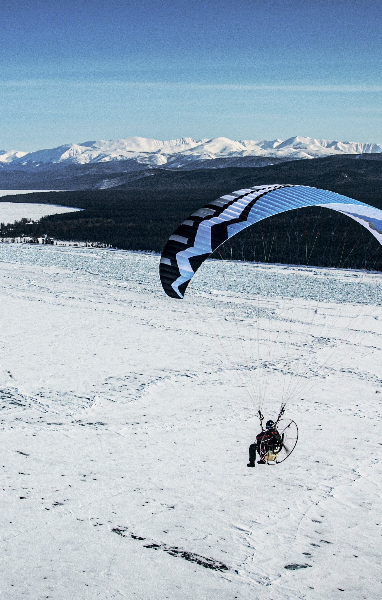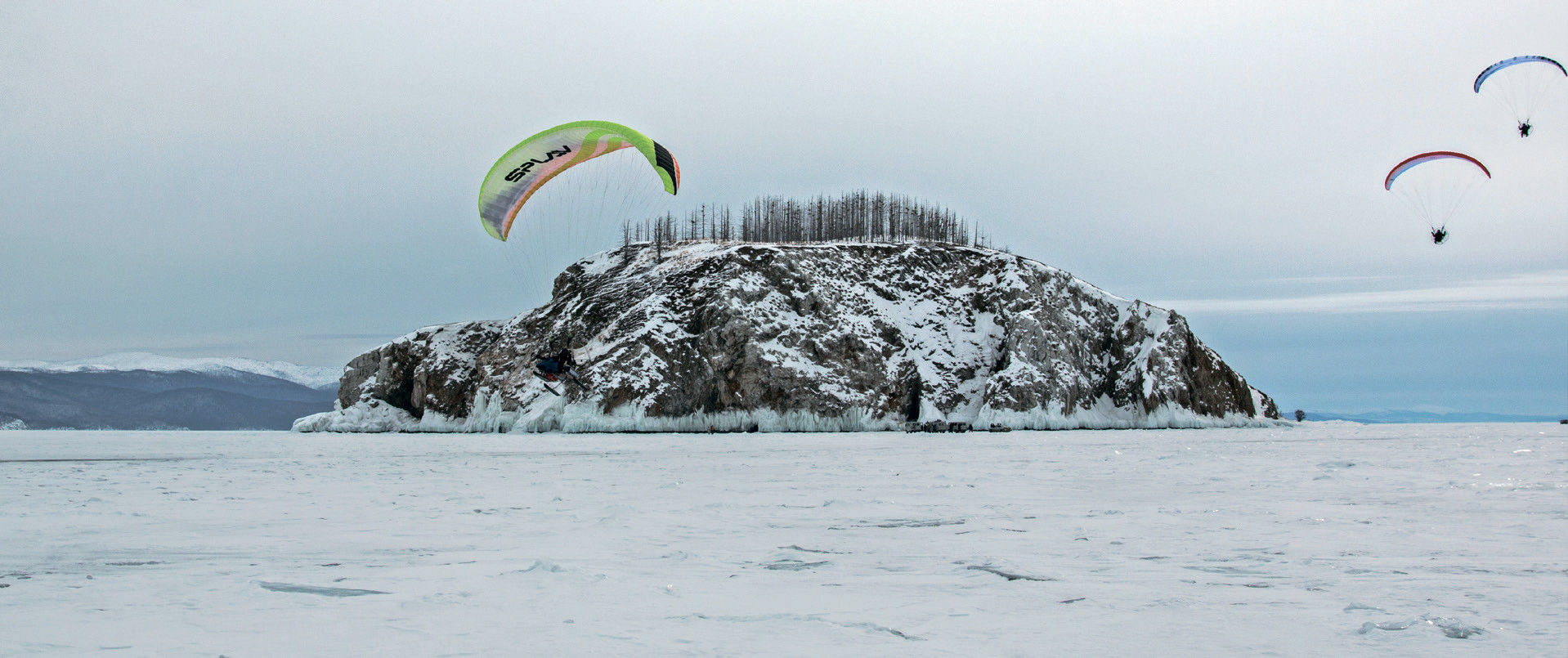 Проблема, однако, решаемая, потому что ровная горизонтальная поверхность в непосредственной близости от береговой линии по всему маршруту все-таки есть, и это – поверхность самого Байкала. Надо только выбрать время, когда поверхность будет еще и твердой. Это тоже не так просто, как кажется. На протяжении почти всей зимы лед на Байкале нестабильный, и в прочный ледяной панцирь толщиной более 10 см озеро одевается только в марте. Правда, в это время здесь случаются обильные снегопады, ураганные ветры и двадцатиградусные морозы, но людей из подмосковного аэроклуба «Игра с гравитацией» подобные «мелочи» не останавливают.