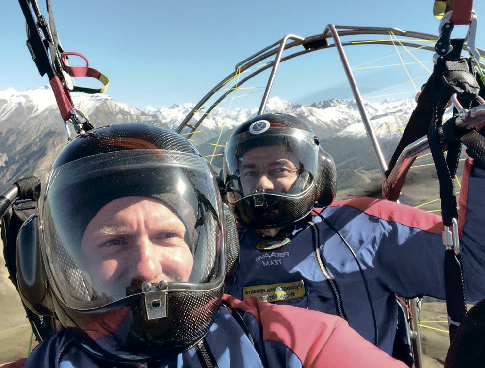 Путешествие проходило на двухместном паралете. Первым пилотом был Игорь Потапкин, штурманом и запасным пилотом – петербуржец Владимир Смертин. Впервые жизнь свела его с Игорем Потапкиным под Омском во время Перелета–2020. Тогда они недолго полетали вместе, потом Владимир был частым гостем на подмосковном парадроме Турово, и там они с Игорем генерировали разные безумные идеи, например, пытались заставить летать мотоцикл «Урал» (с коляской).