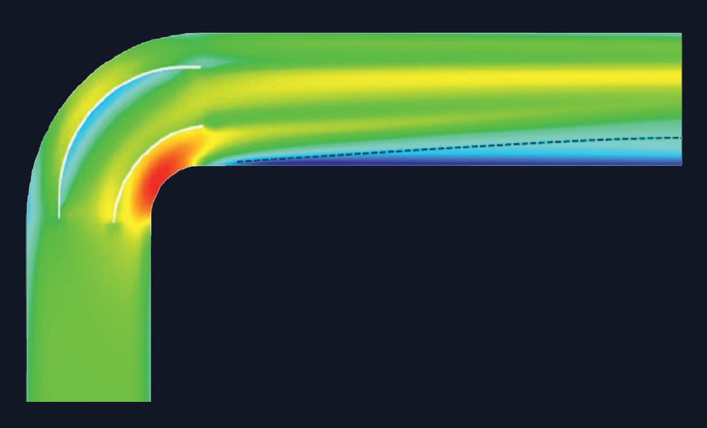 Проблема, над решением которой предлагалось поработать, заключается в том, что поток жидкости или газа, протекающий по трубе, теряет скорость при повороте. Поток отрывается от стенки трубы, и давление в трубе падает, причем падает неравномерно. Отрыв от внутренней стенки усиливается стремлением потока двигаться по инерции в изогнутом участке по направлению к внешней