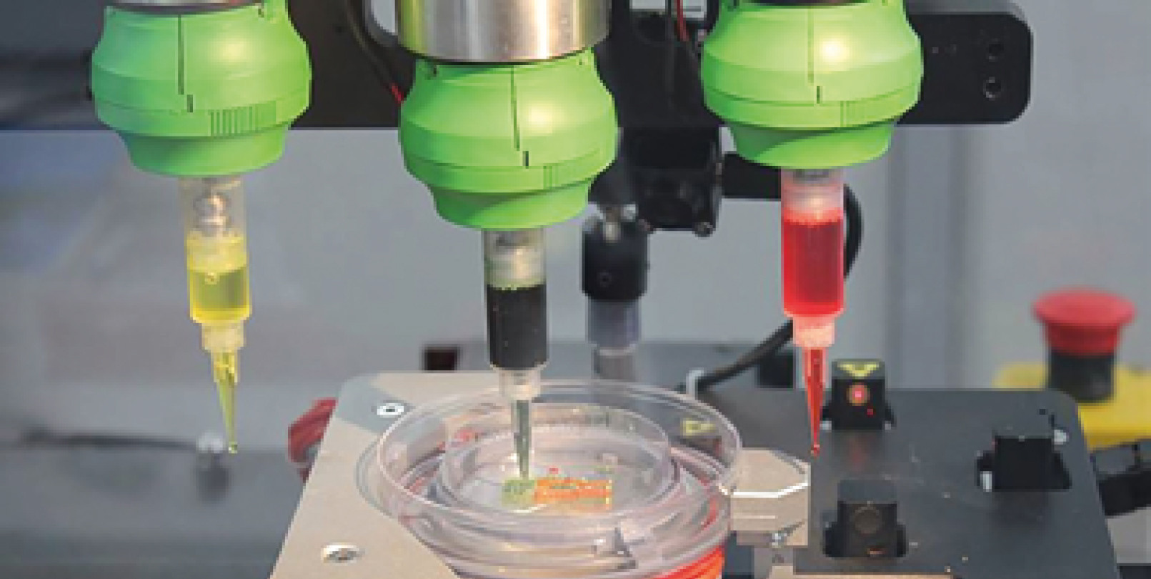 Технология 3D-биопринтинга – практически ровесница века. Одним из ее основателей стал Владимир Александрович Миронов, чья концептуальная работа на эту тему была опубликована в 2003 году. В то время он жил и работал в США, но позже вернулся в Россию и стал научным руководителем российской компании 3D Bioprinting Solutions. Первый серийный биопринтер создали в 2009 г. в США (компания Organovo). В 2014 г. появился первый российский 3D-биопринтер FABION (компания 3D Bioprinting Solutions). Принцип работы этого устройства почти тот же, что и обычного трехмерного принтера, но в качестве «строительного материала» используются так называемые биочернила – гелеобразная субстанция, насыщенная живыми активными биологическими клетками. Это могут быть бактерии, а могут быть клетки, извлеченные из тканей многоклеточного организма, в том числе и человеческого, а затем размноженные в биореакторе. Помещая клетку в определенную точку пространства, можно создавать сложные клеточные конструкции, которые затем, если все сделать правильно, заживут своей жизнью. Гель на первых порах служит строительным раствором, скрепляющим конструкцию, а потом, когда взаимодействие налажено, удаляется.