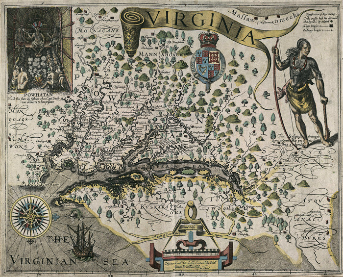 В апреле 1606 г. король Яков I пожаловал двум акционерным компаниям, Лондонской и Плимутской, хартии, по которым им предоставлялось право на колонизацию восточного побережья Северной Америки между 34° и 45° с.ш. Владения первой компании находились на юг от 41°, а второй — на север от 38° с.ш. Территория, заключенная между ними, подлежала совместному заселению после освоения главных владений. Эта новая британская колония получила имя Виргиния, сохранившееся до наших дней как название американского штата, а две занимающиеся ее делами компании со временем слились в одну – Виргинскую.