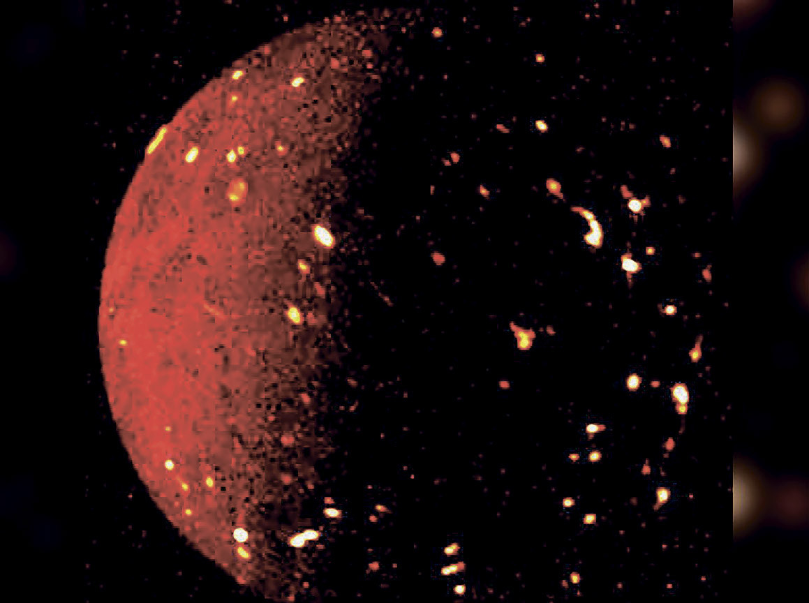 Представления о великом субъективны. Острый пик, вздымающийся на два Эвереста, может не поразить воображение, ибо оценить его грандиозность, не имея предмета для сравнения, трудно. Но способен ли разум вместить картину вырывающейся из жерла вулкана струи газа высотой 500 км? Такие масштабы слишком далеки от человеческого опыта. И даже межпланетную станцию «Вояджер» подобное зрелище поразило прямо в электронный мозг с последующим отказом оного. Особо изощренные команды операторов привели робота в чувство. Но инцидент говорит о многом. Ио – наиболее активное сейсмически тело Солнечной системы. Настолько активное, что измерение высоты гор – пустое занятие. Не факт, что завтра гора будет на прежнем месте и в прежнем состоянии.