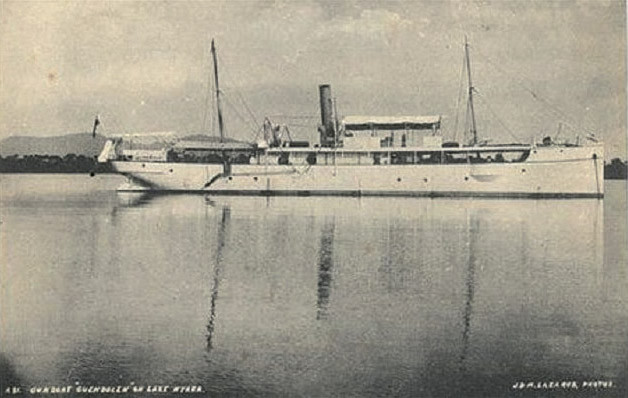 Озеро Ньяса (сейчас называется Малави) имеет длину 584 км, а его ширина варьируется от 16 до 80 км. Поверхность озера лежит на высоте 472 м над уровнем моря, его площадь – 29 604 км², средняя глубина – 292 м, максимальная – 706 м. Девятое по величине в мире и третье в Африке. Славится сильными штормами в период с мая по сентябрь. На тот момент к его берегам выходили колониальные владения трех государств – Британии, Германии и Португалии. Конечно, на озере существовало судоходство, и как тут обойтись без военно-морских сил? Естественно, каждая страна должна зорко следить, как бы подлый противник не вторгся в их владения и не нарушил суверенитет территории. И для этого на страже акватории стояли целых два боевых парохода: британский «Гвендолин» 1899 года постройки и немецкий «Германн фон Виссманн» на пять лет помладше. Кроме «Гвендолен» у британцев на этом озере было еще два вспомогательных судна: «Чонси Меплс» (SS Chauncy Maples) и «Королева Виктория» (SS Queen Victoria), правда, без всякого вооружения на них.