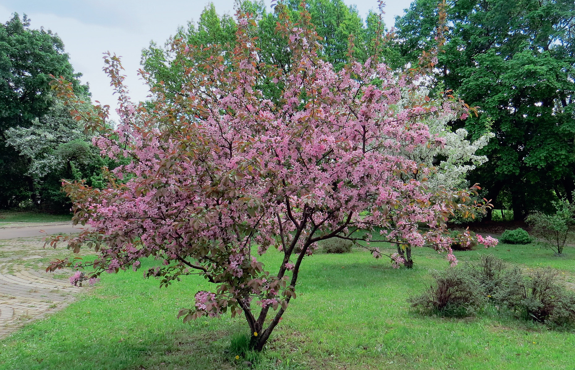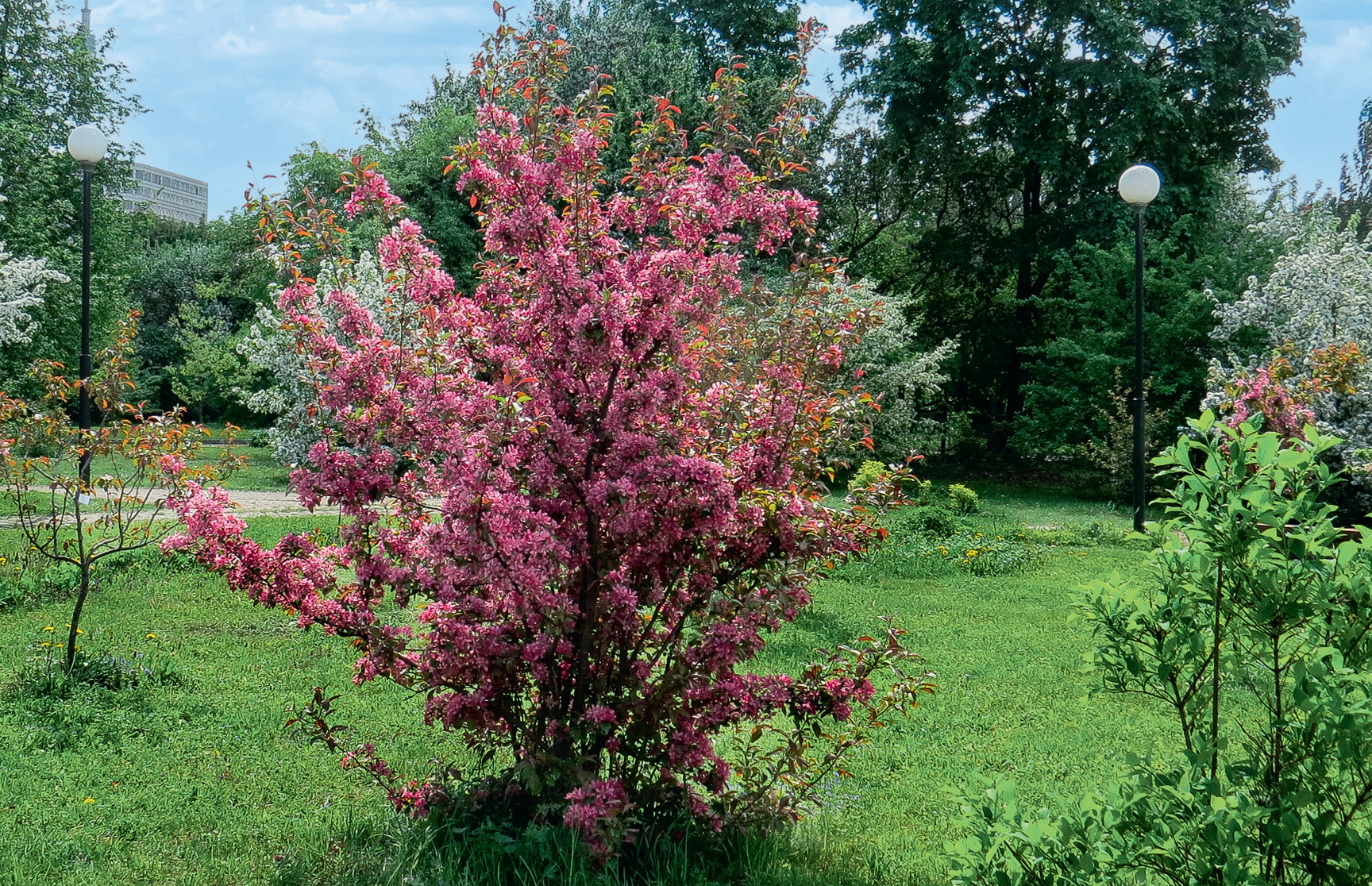 Декоративные яблони — садовая группа, переживающая новый расцвет. Хорошо известные в конце XIX века, они оставались в небрежении во времена погони за урожаями. Их специфическое прозвище — крэбы (от американского crab, crabapple, то есть «дикая лесная яблоня») — забылось, и сейчас в отечественных каталогах их чаще называют просто «декоративными яблонями». Принципиально они не отличаются от плодовых, которые, кстати, в советские годы успешно украшали парки и улицы наших городов. Крэбы делают это более виртуозно, поскольку декоративность — их главное качество. Оно проявляется в разнообразии очертаний крон, окраске листвы и обилии цветков. Многим из них свойственны «долгоиграющие» яблочки, которые радуют глаз после листопада.