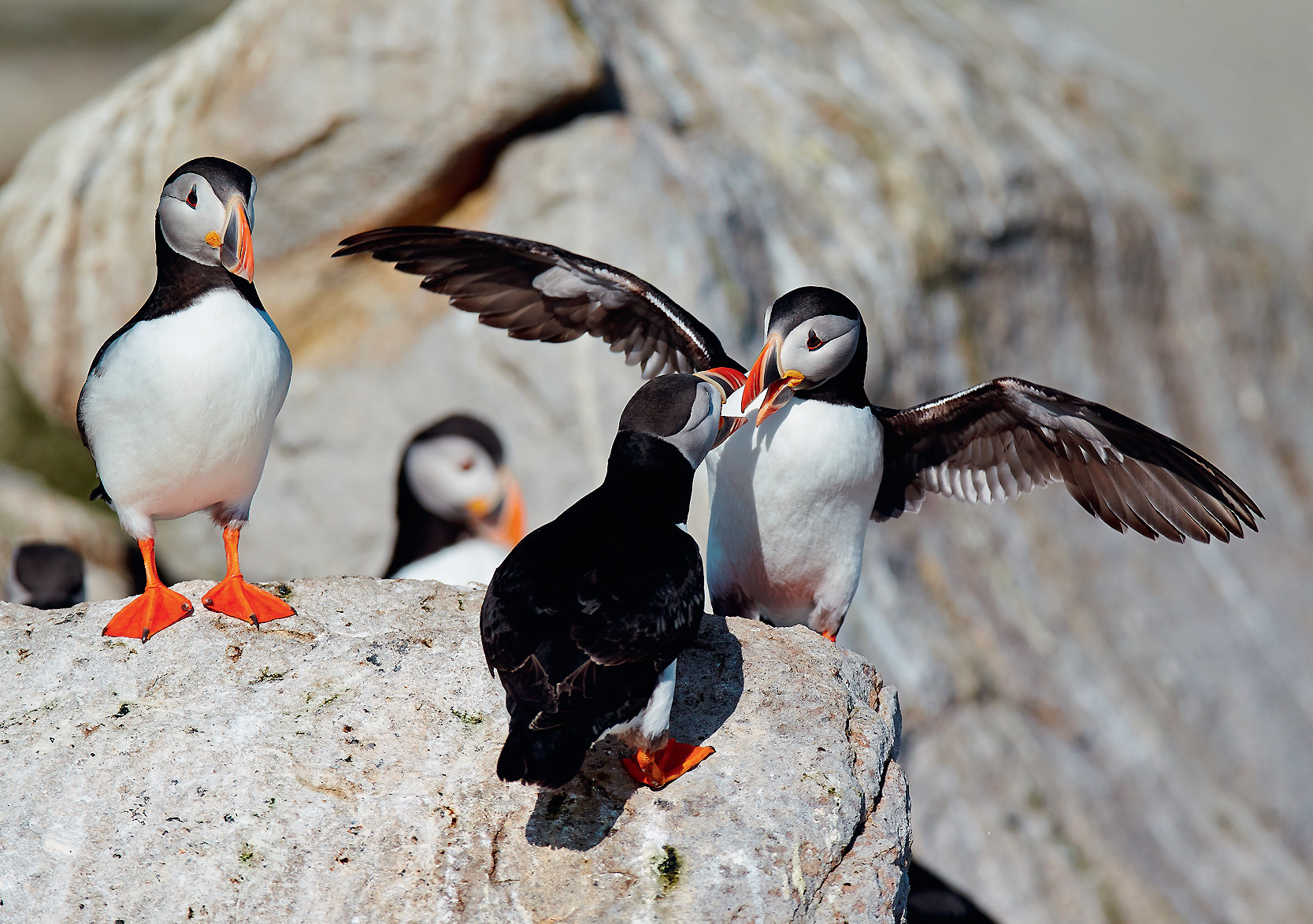 У тупика необыкновенно выразительный взгляд — благодаря серо-голубому кожистому треугольнику вокруг глаза, который делает птицу похожей на циркового клоуна с характерным гримом на лице. Контрастирующие со строгим чёрным «костюмом» оранжево-красные лапы с чёрными когтями довершают брачный образ тупика. Внешний вид этих ярких птиц и их несомненно интересное поведение на островах — достаточный стимул для того, чтобы побывать в этих местах и понаблюдать за ними. Но лишь тупикам присуща единственная в своём роде общественная форма поведения в колониях — так называемая карусель. Вот для того, чтобы увидеть это специфическое поведение «морских клоунов», я и собрался в дорогу на этот раз.