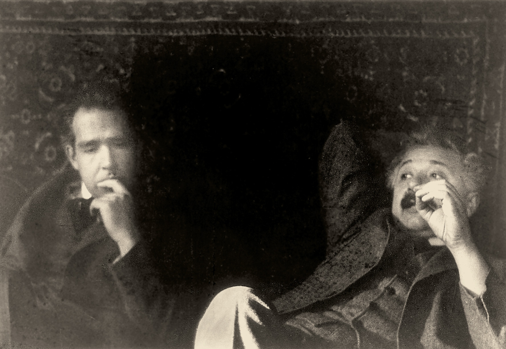 И тут произошло нечто неожиданное: «В этот момент дверь почти бесшумно открылась, и в комнату на цыпочках вошёл Эйнштейн. Он поднёс палец к губам, давая мне понять, что нужно сидеть тихо, мальчишеская улыбка заиграла на его лице. Через несколько минут он пояснил причину такого его поведения. Доктор строжайше запретил ему покупать табак, но вот красть табак он ему не запретил, и это было именно то, что он сейчас намеревался сделать. Оставаясь на цыпочках, он напрямую прошёл к табакерке, принадлежавшей Бору, она стояла как раз на том столе, за которым сидел я. В это время Бор, ничего не подозревая, продолжал смотреть в окно, повторяя: „Эйнштейн. …Эйнштейн...”. Я растерялся, не зная, что делать, тем более, что в тот момент я не имел ни малейшего представления о том, что собирается сделать Эйнштейн.