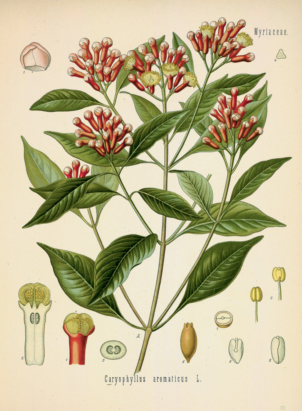 В отечественной кулинарии и литературе гвоздикой принято называть высушенные, нераскрывшиеся цветочные бутоны вечнозелёного тропического дерева сизигиум ароматный (Syzygium aromaticum) из семейства Миртовые (Myrtaceae). На деревьях высотой 10—12 м два раза в год появляются мелкие цветки с красными чашелистиками и четырьмя бледно-розовыми лепестками, собранные в верхушечные сложные полузонтики. Плоды — ложные ягоды, содержащие одно или два семя.