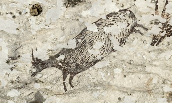 Наскальные рисунки с острова Сулавеси... Фото: Endra/Griffi th University