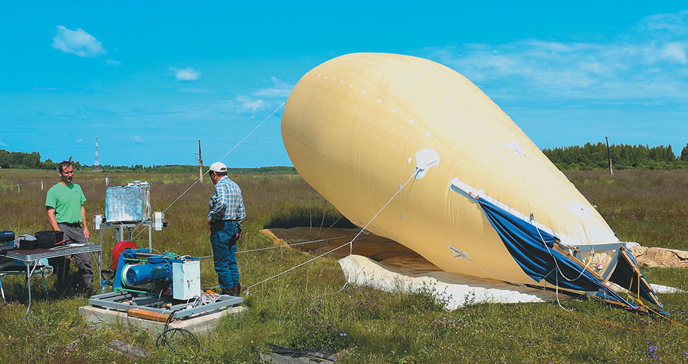 Для того чтобы проводить такие измерения, мы создали научно-исследовательскую аппаратную платформу, которая содержит оригинальные датчики электрического поля и полярных электрических проводимостей атмосферы, концентрации аэрозолей в шести диапазонах и радонометр. Кроме того, платформа оснащена специализированным компьютером и мини-метеостанцией. Всё оборудование с учётом блока аккумуляторов весит 25 килограммов — предельная возможность подъёма для аэростата. С помощью привязного гелиевого аэростата платформа может подниматься до 500 метров, зависать на любой из заданных высот. Платформа позволяет проводить комплексные геофизические исследования. Запуски проходят в летнее время, при определённых погодных условиях — когда нет дождя и ветра, в течение вот уже пяти лет. Исследования ведутся при поддержке Российского научного фонда. Их результаты отражены без малого в десятке публикаций в наиболее авторитетных иностранных журналах, относящихся к так называемому первому квартилю.