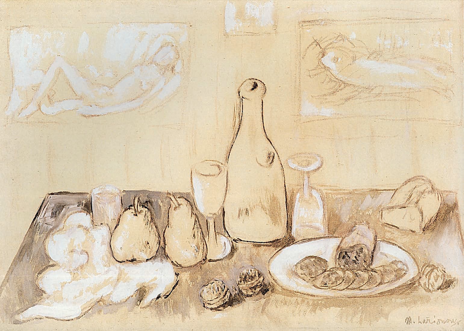 Что же касается концепции выставки, то Евгения Илюхина, коллега, с которой мы курируем эту выставку, предложила российский период представить в основном живописными работами, а парижский — главным образом графикой. Такое деление условно, потому что и в России Ларионов писал много пастелей, гуашей, акварелей, а в Париже также работал в живописи. Но парижский период более труден в том смысле, что он ещё по-настоящему не оценён. Поздняя живопись Ларионова отличается от русской. Монохромная, медитативная, туманная, бледная — она кажется однообразной. Два периода творчества Михаила Фёдоровича получились у нас контрастными, но, может быть, это и хорошо. Жизнь вне России у него, действительно, изменилась, и самочувствие тоже…