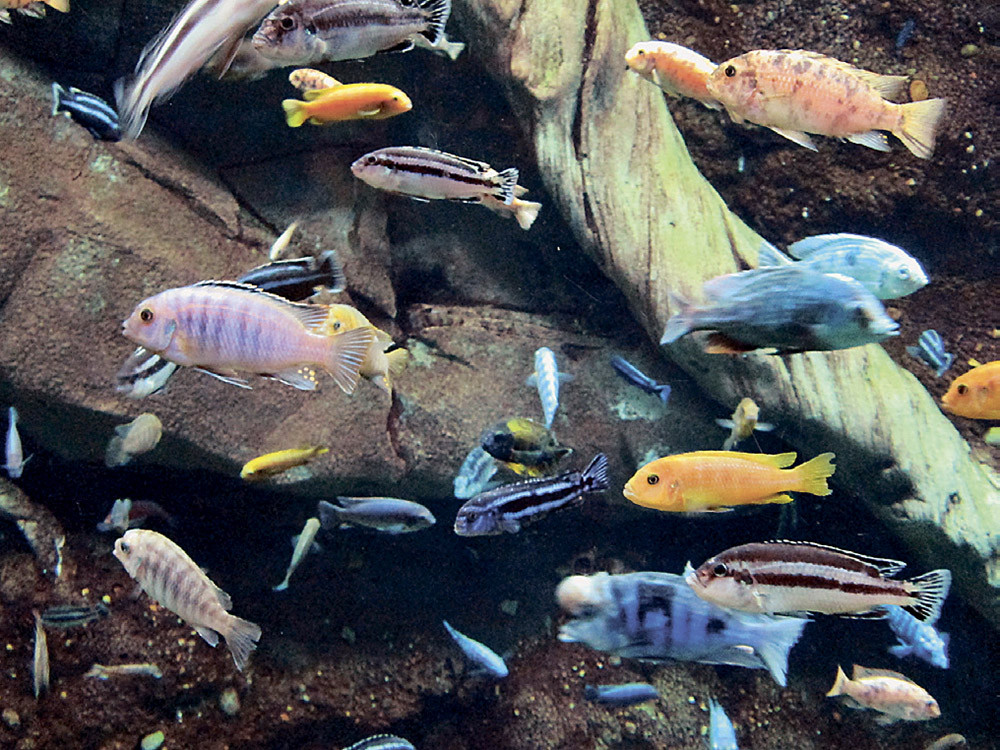 Африканское озеро Танганьика известно большим разнообразием рыб семейства Цихлиды. В озере площадью 32 900 км2 их насчитывается около 250 видов, размеры — от малюток с канцелярскую скрепку до почти метровых гигантов (на снимке мелкие представители семейства). Откуда такой разброс величин? Чтобы ответить на этот вопрос, ихтиологи и генетики из университетов Базеля, Берна (Швейцария), Кембриджа (Великобритания), Осло (Норвегия) и Института исследований полимеров (Германия) изучили поведение и генетику 57 танганьикских видов семейства. Их помещали в небольшие прудики и наблюдали поведение в первые 15 минут после попадания в незнакомый водоём. Многие рыбки тут же начинали обследовать новое местообитание. Когда рассмотрели генетику этих особей, оказалось, что на степень любопытства влияет ген, называемый cacng5b. Вырабатываемый им белок участвует в функционировании нервных клеток, которые отвечают прежде всего за поведение при страхе и бегстве. Немного подредактировав этот ген у рыбок, не проявлявших желания обследовать новое окружение, генетики добились и у них роста любопытства. Как предполагают исследователи, около 10 миллионов лет назад только сформировавшееся озеро начали заселять самые подвижные и любопытные цихлиды с активным геном cacng5b. Со временем «тяга к новому» перестала влиять на успешность жизни в озере и часть цихлид, особенно крупные виды, стали спокойнее и утратили любопытство своих предков.