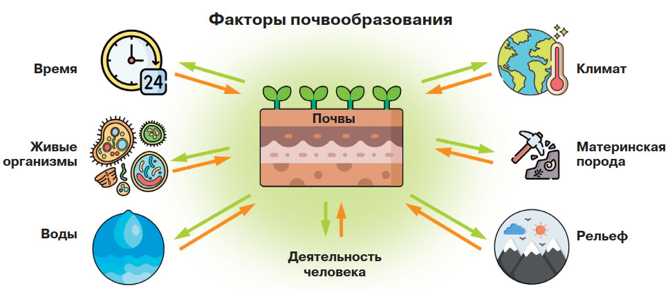 Почва, тонкий слой поверхности земли, имеет толщину всего один-два метра. Но благодаря именно этому тонкому слою существует жизнь на нашей планете. В. И. Вернадский назвал почву биокосным телом, поскольку помимо неживой материи она содержит миллиарды живых существ, что принципиально отличает её от горной породы. Формируется и функционирует почва в зависимости от климата, материнской породы, рельефа, времени образования, населяющих её живых организмов, а в последние годы — и от деятельности человека. То есть, по сути, это центральное звено во взаимодействии геологического и биологического круговоротов веществ.