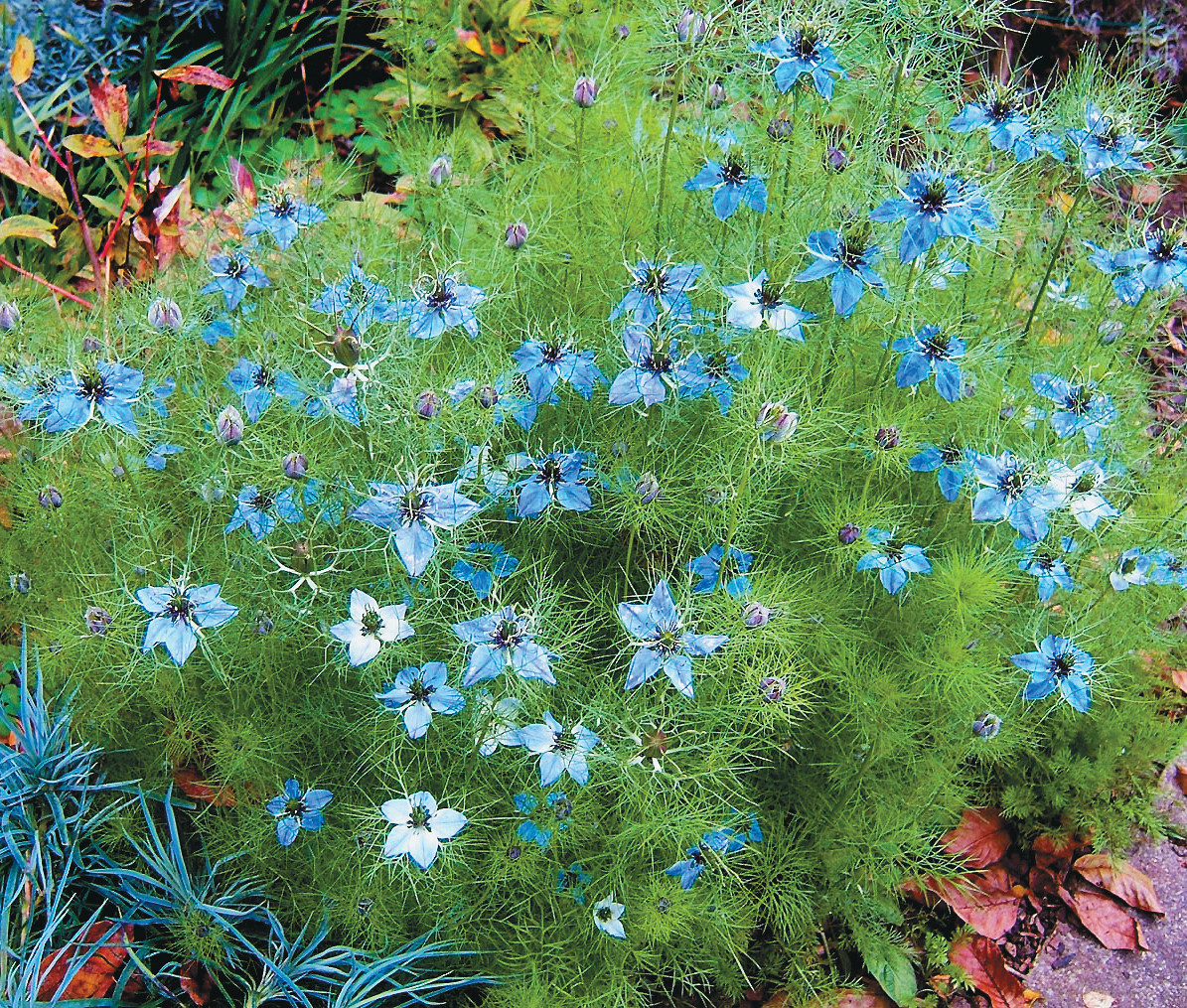 Оригинальный внешний вид цветущей чернушки дал повод неистощимой фантазии наших предков наградить её курьёзными названиями: «девица в зелени, дева в лесу, простоволосая невеста, дьявол в кустах»1. На страницах изданий, посвящённых флоре Израиля, Англии, Ирландии, можно встретить ещё более забавные названия для внешне очень похожего близкого вида садового растения чернушки дамасской: «любовь-в-тумане» (Love-in-a-mist)2 и «растрёпанная дама» (ragged lady)3.