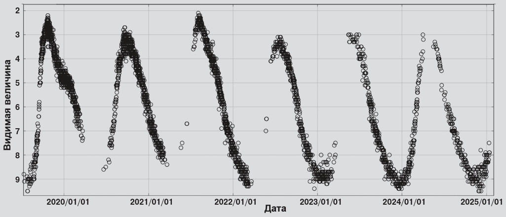 Почему же никто из астрономов древности и Средневековья не замечает столь яркую звезду, хотя они отмечают значительно более тусклые? Прямо звезда-невидимка какая-то! Причина, на мой взгляд, связана с сильной изменчивостью Миры. Само по себе изменение блеска небесного светила не лишает его в глазах древних астрономов права называться звездой. Так, вряд ли они не заметили изменение блеска Алголя более чем на одну звёздную величину (об этом давно ведётся дискуссия*), однако Алголь фигурирует во всех каталогах.