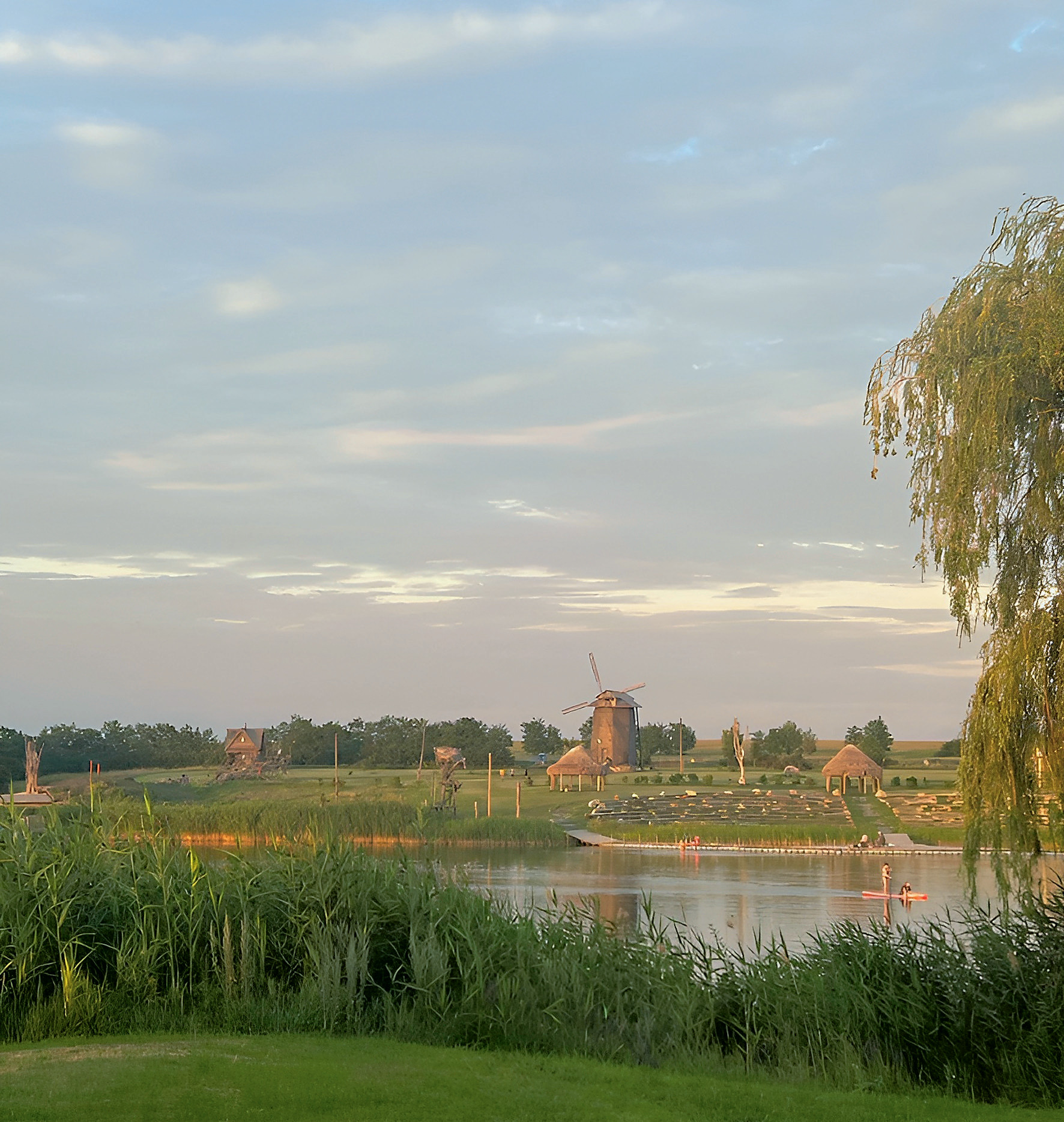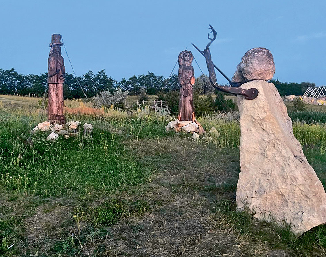 …Посетителей парк встречает примечательными композициями из камня, дерева и металла. Вслед за ними на горизонте холмистой лесостепи появляются мельница, избушка на курьих ножках, подвесной деревянный мост и много-много всего неожиданного…