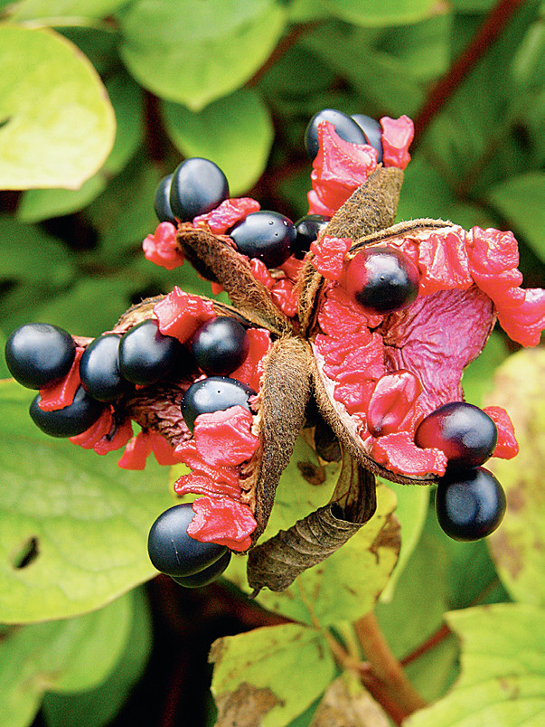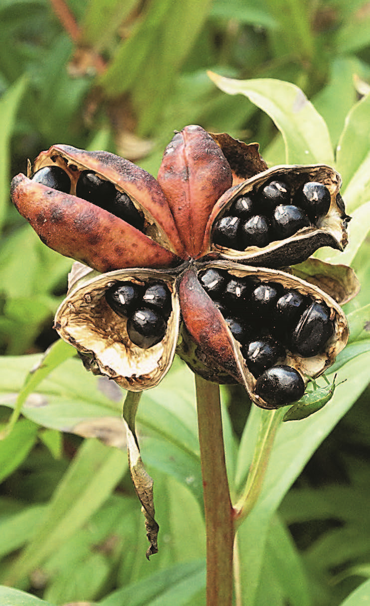 Эти растения не могут сравниться с культурными потомками ни величиной, ни пышностью цветков, хотя диапазон расцветок их очень широк. Достоинства диких, или дикорастущих, пионов в иных качествах — разнообразии листвы и раннем цветении, в мае — начале июня. Особого внимания заслуживают плоды — крупные листовки, растопыренные звёздочкой, которые растрескиваются вдоль её «концов». Обычно они содержат крупные, агатового цвета семена, но у ряда видов (пионы мужской, даурский, обратнояйцевидный и др.) иссиня-чёрные шарики зрелых семян сопровождают стерильные семена пронзительно малинового цвета.