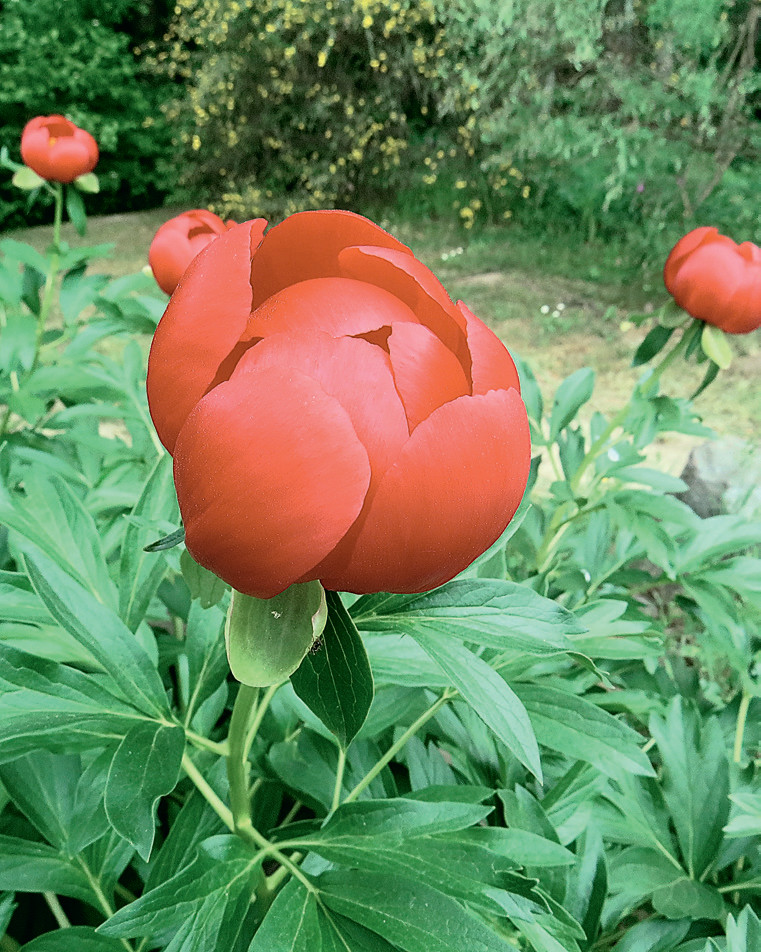 Пион лекарственный (Paeonia officinalis). В природе встречается в светлых низкогорных лесах от Португалии до Балкан и Швейцарии. Его начали выращивать в монастырских садах средневековой Европы, и с тех времён сохранились махровые сорта этого пиона: Rosea Plena, Mutabilis Plena, Rubra Plena, а также редкий сорт Alba Plena.