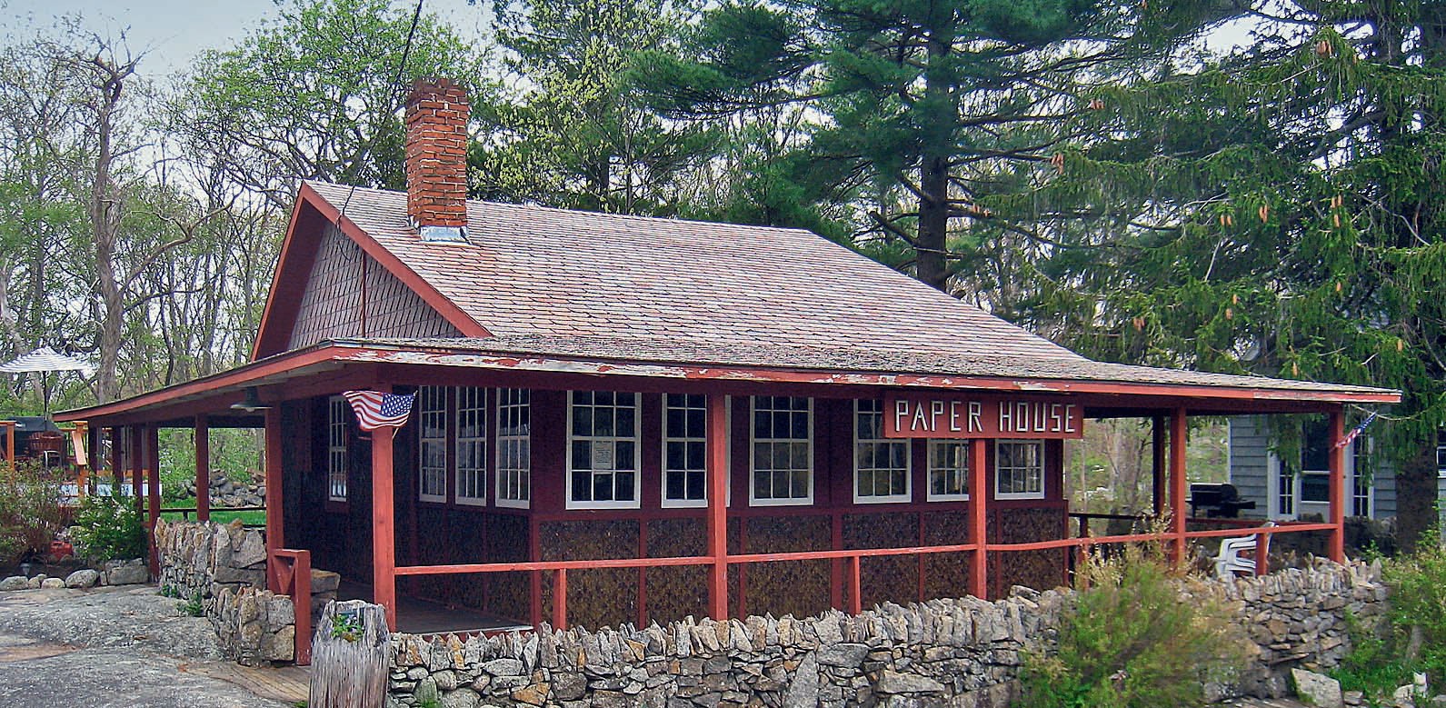 В 1922 году американский инженер Илис Стенман решил построить небольшой дачный домик. Каркас, крыша и полы в нём обыкновенные, из дерева, но стены владелец участка решил склеить из газет. Он использовал самодельный клей, сваренный из муки с добавкой яблочных шкурок. Автора оригинальной идеи интересовали возможности бумаги как строительного материала (кстати, среди изобретений Стенмана автомат для изготовления канцелярских скрепок). Первоначально