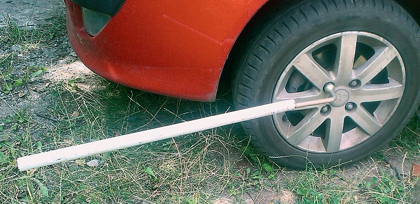 При самостоятельной замене пробитой шины в полевых условиях бывает очень трудно открутить гайки фланца ступицы колеса автомобиля стандартным ключом, входящим в комплект. Возите с собой небольшую трубу, чтобы с её помощью увеличить длину рычага и крутящий момент.