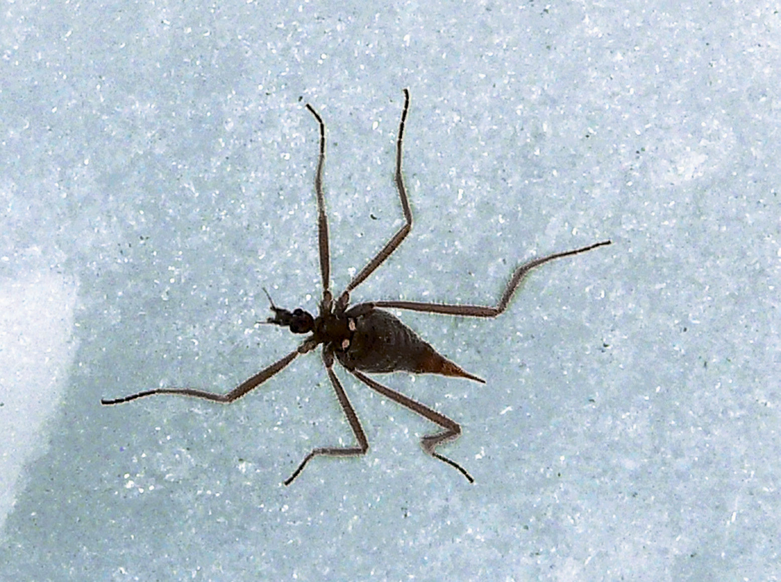 Вопреки распространённому мнению, отнюдь не все букашки любят тепло и с наступлением холодов впадают в оцепенение. Ледничники (Boreidae), относящиеся к скорпионовым мухам (Mecoptera), активны на снегу. Даже на вечно холодных антарктических островах, да и на самом снежном континенте, Антарктиде, обитают бескрылые комары-звонцы (Chironomidae). В занятых снегами высокогорьях тоже есть «моржи» среди насекомых, как, впрочем, и среди небольшого числа других беспозвоночных. Иные кольчатые черви-энхитреиды (Enchytraeidae) ползают прямо по снегу на ледниковых склонах.