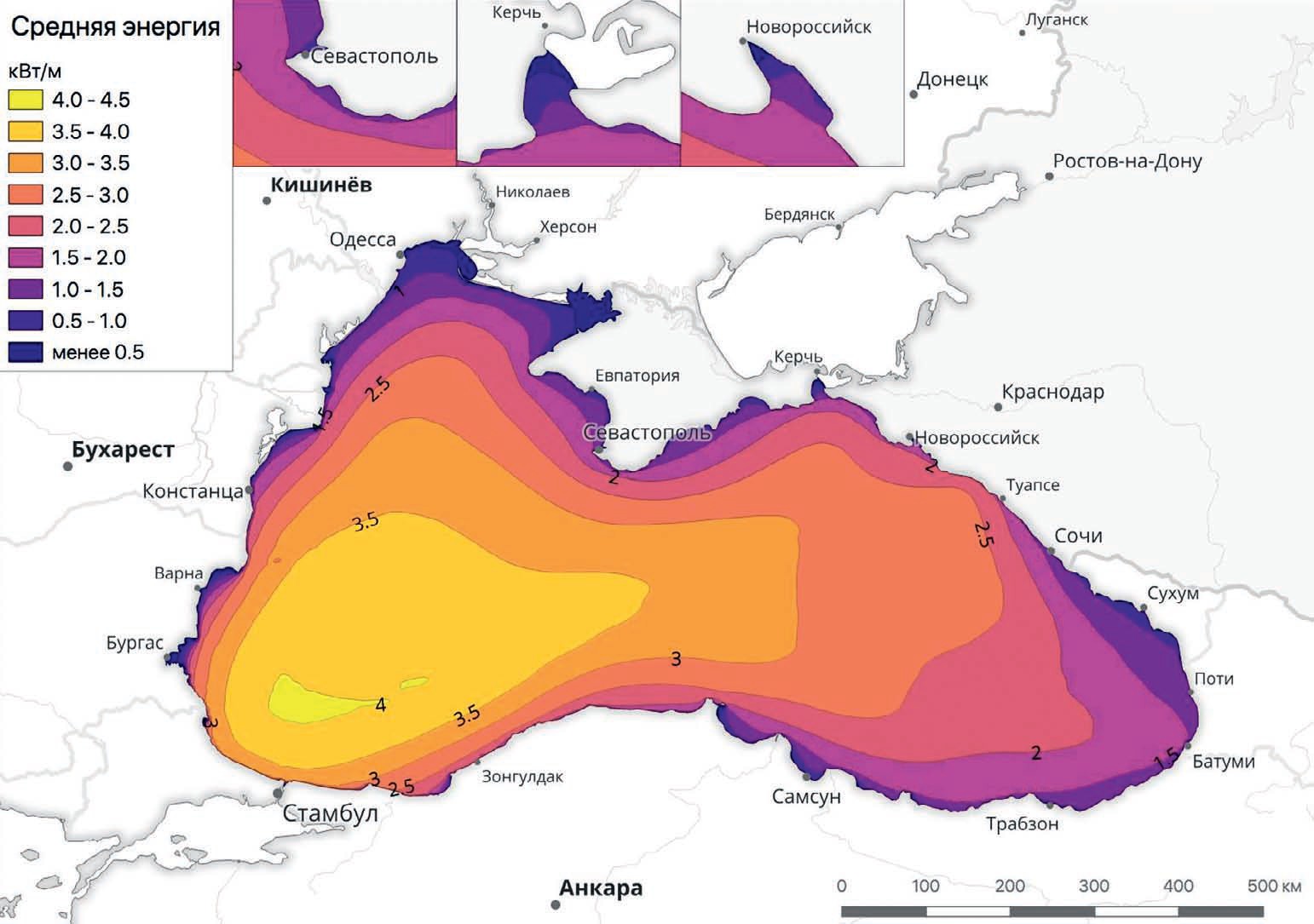 В тестовой версии веб-атласа содержатся данные о пространственном распределении энергии волн в Чёрном, Каспийском, Балтийском, Баренцевом и Карском морях. Атлас содержит также информацию об основных