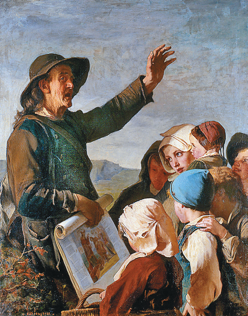 С начала XVII века в европейских городах стали появляться торговцы самой дешёвой книжной продукцией — бумажными листами с записанными на них молитвами, евангельскими притчами, песнями. Распространением их промышляли разорившиеся крестьяне, обнищавшие вдовы, не имевшие иной работы инвалиды, которых издатели нанимали за мизерную плату.